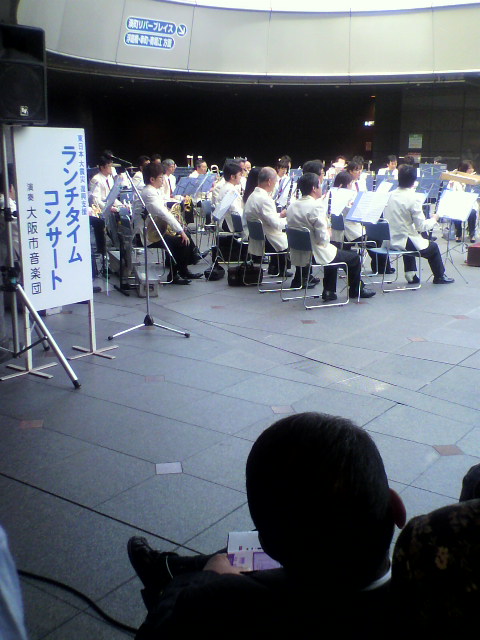 湊町のオーキャットへ着くと、大阪市音楽団(日本で一番歴史がある交響吹奏楽団だそうです)のコンサート会場に遭遇(^O^)
