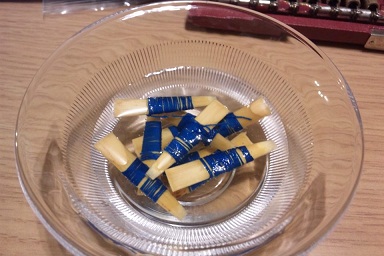 次、チューブとこの加工した舟形を糸で巻くわけですが