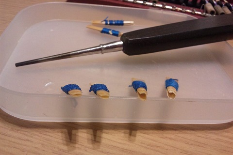 細い方は、後々糸を巻いてチューブと段差なくなじませたいのと