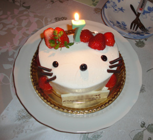 そのお店では初めて見ました、キティちゃんケーキw