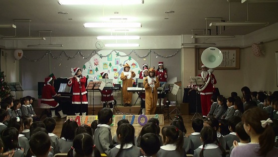 京田辺市の薪幼稚園のクリスマス会にて