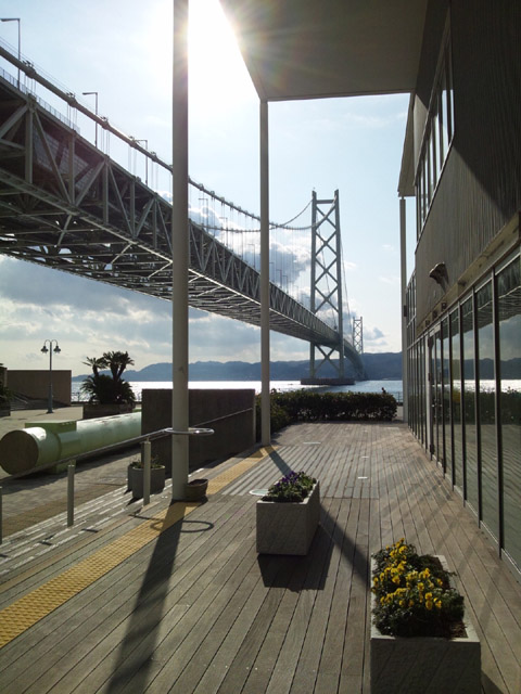 後程渡る明石海峡大橋を下から見ることができる