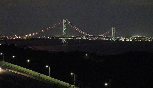 ライトアップされた明石海峡大橋をパチリ☆