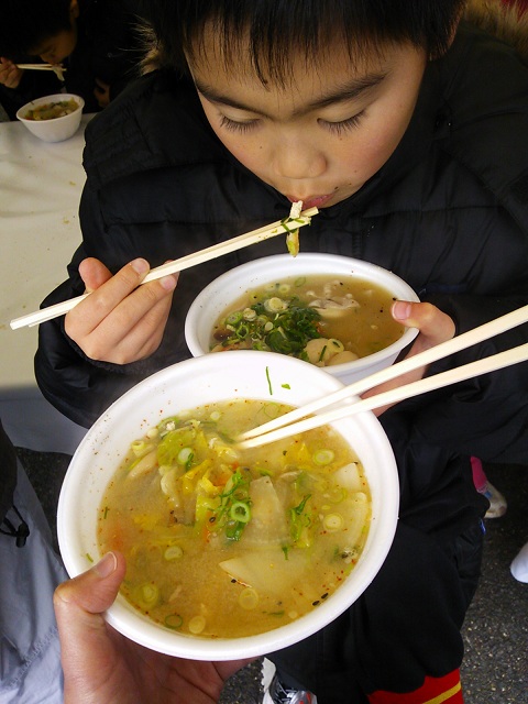 参加者には豚汁券がついていたので最後に引き換えに…。